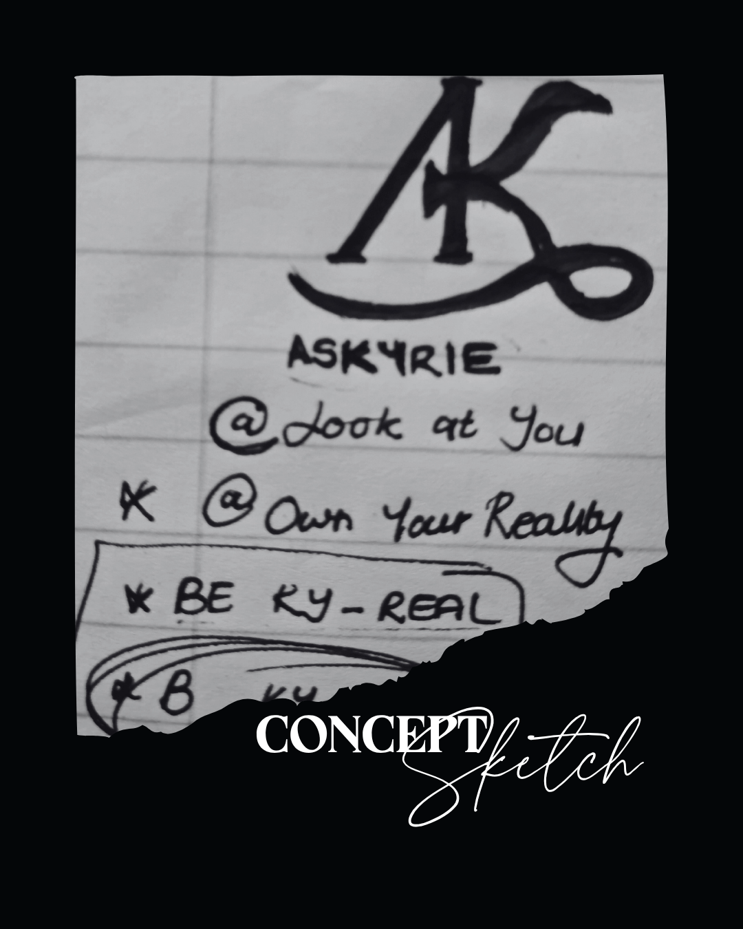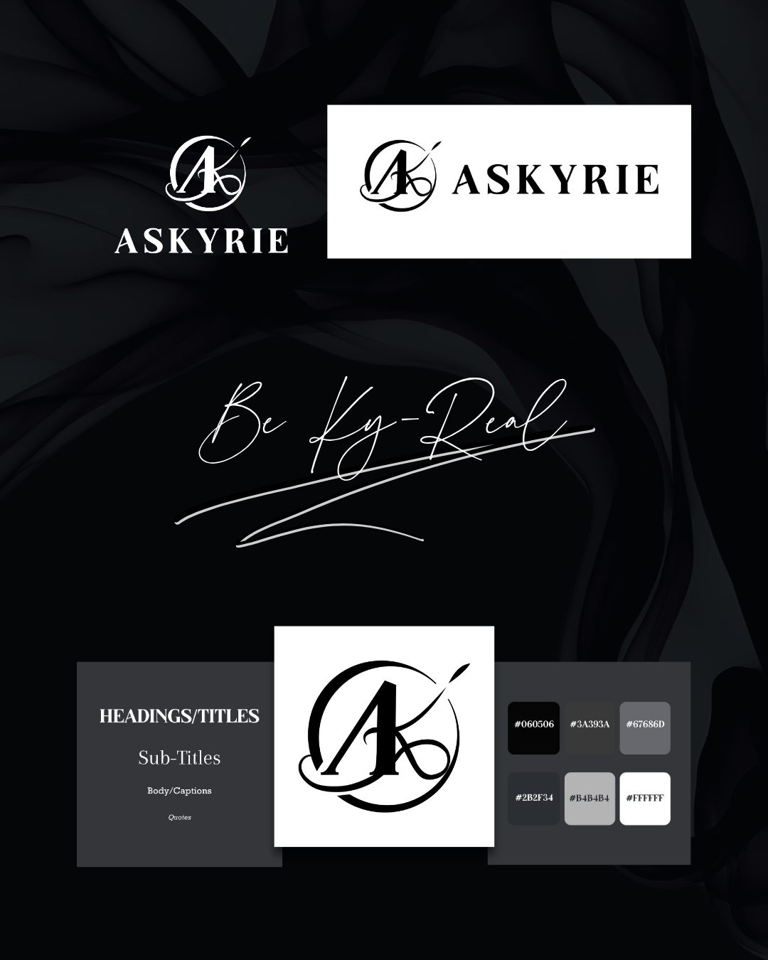 CLIENT BRIEF: Kyrie is a blogger that blogs about some of society’s boldest, most uncomfortable truths about human behavior and modern dogma. she wanted a brand that connects with a highly emotionally intelligent audience in a way that felt serious, empathetic and sophisticated (not cold or intimidating).I decided on A monogram logo—personal and memorable, grounding the brand in her name. Mixed typography: a strong serif ‘A’ for elegance and gravity, paired with a handwritten ‘K’ to bring in warmth and relatability. A minimalist color palette: just gray, black, and white, using thoughtful photography for depth and emotional resonance. For her tagline, “Be Ky-real,” we fused her name with a call for authenticity, a playful, memorable sign-off for every article and post.